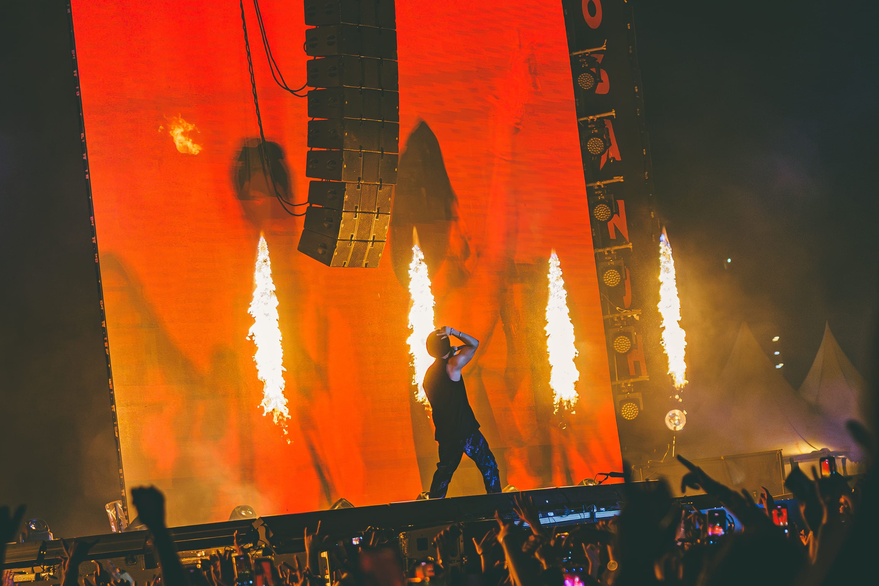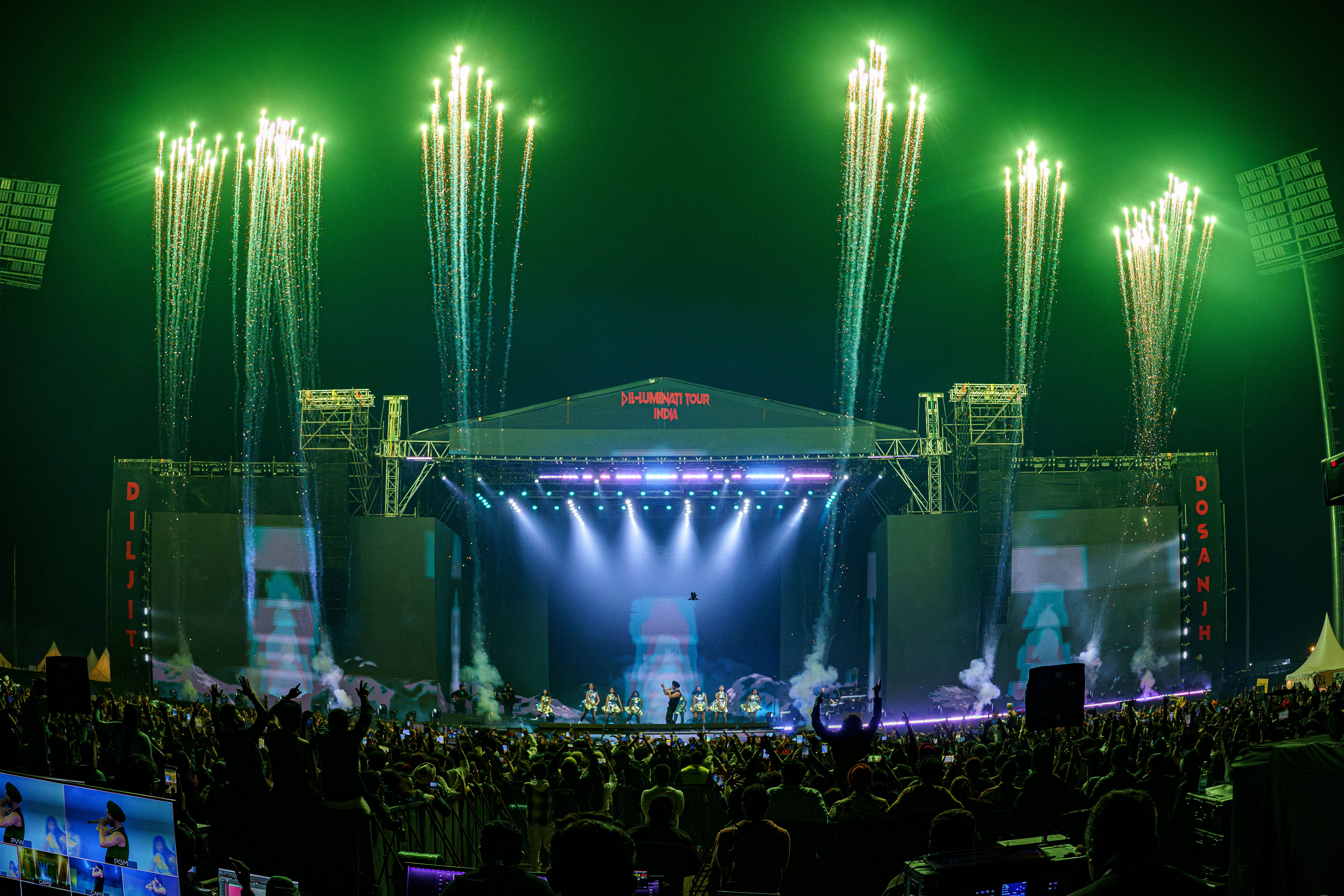 Cinematic live performance coverage capturing large-scale stage production,
